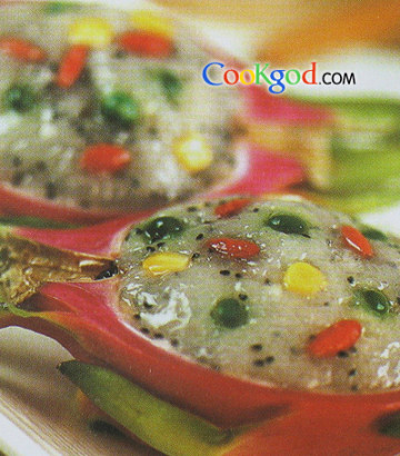 第一种:家常菜菜谱龙果蒸虾胶做法