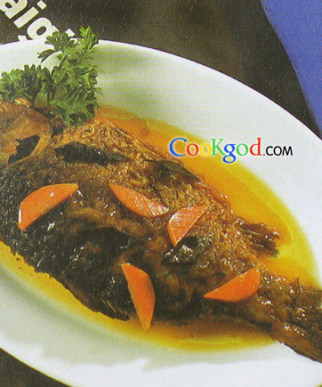 出锅浇上番茄芡汁,称番茄酥鲫鱼。