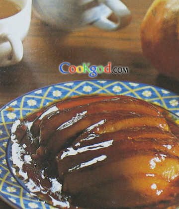 2、将炸好的肉块切成0.7厘米厚的大片,皮面朝下整齐的码摆在小盘内,加绍酒、酱油、精盐、白糖、冰糖、葱段、姜片、花椒、八角,添适量汤,上屉蒸45分钟取出,拣出葱、姜、花椒、八角,滗出余汤,扣在盘中。