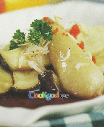 杏鲍菇用白苓菇替换,称为红酒开洋白苓菇。