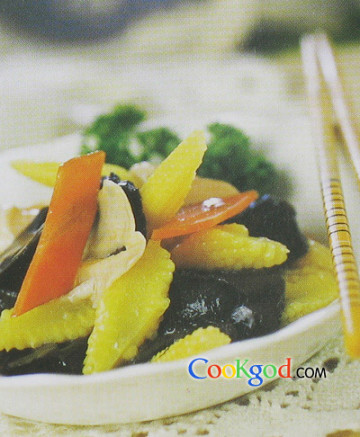 第一种:家常菜菜谱玉米虎掌烧鲍片做法