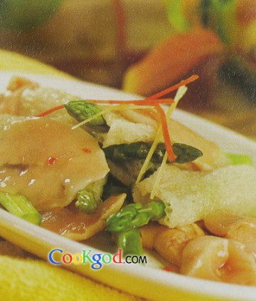 第一种:家常菜菜谱竹荪芦笋烧鲍片做法
