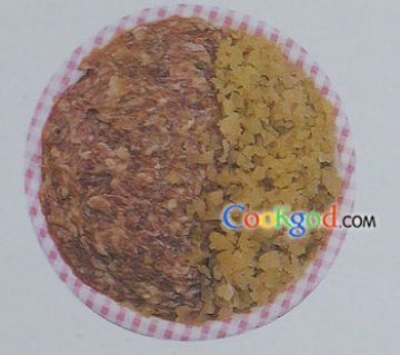 榨菜洗净切粒与肉馅拌匀。
