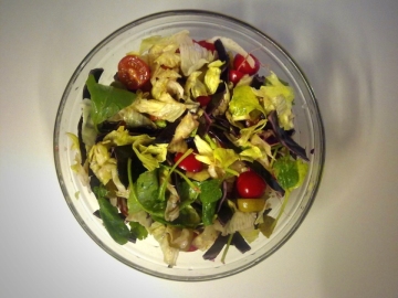 1、食材:紫衣甘蓝、生菜、圣女番茄、水果萝卜、腌黄瓜、花生