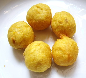 3.锅内倒入色拉油,在放入丸子时油温要高,还要不停的翻动,否则容易粘锅,当炸至金黄色时,美味的小丸子就可以享用了。