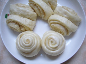 6.做好的花卷,放在铺湿屉布或刷油的蒸架上再醒20分钟。