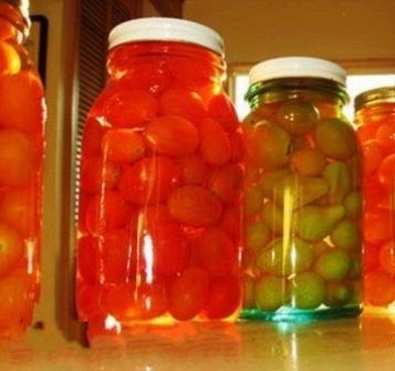 1.采用容积为2~4升的玻璃罐,洗净用布擦干内壁水分。 2.鲜西红柿洗净沥干,装入玻璃缸内,均匀撒上其他配料。 3.用1千克冷开水溶解40克食盐,将盐水注入玻璃缸内淹没菜料,用白铁盖盖住,暂不密封,发酵8~10昼夜,再密封。 4.密封时,再用500克冷开水溶解35克食盐,搅拌均匀,注入玻璃缸内,且在罐口垫上厚1~1.5厘米的橡胶圈,然后将盖盖紧。