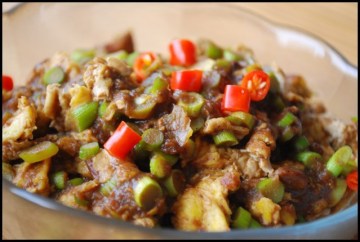 3、加蒜薹、豆瓣酱、剁椒,炒熟就好了。