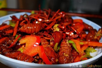葱姜蒜爆锅,下入茧蛹,不断的炒,不要放水什么的,加花椒面,料酒,可以盖上盖子,焖一会,最后里面的水分一点没有了,就好了