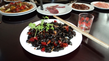 今秋,我搬回来的虫儿一下子是吃不完的,便将煮好后的虫子放进冰箱的冷冻室,稍后时日再慢慢炒制食用。还得给远在北方读大二的儿子留上一些,待他放寒假回来才好品尝呢。