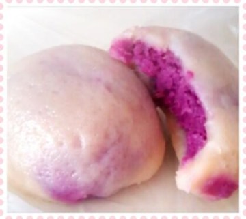 4.上锅蒸熟(容器抹油)就大功告成啦!大口的紫薯馅料,甜甜糯糯的,好满足……