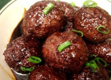 你一定要问,这不就是平时吃的肉圆子吗?为什么叫狮子头呢 将它的大小和普遍肉丸比较一下就知道了.再就是口感和做法上比全油炸出来的肉圆子更为清淡一些.看一个狮子头顶八个小圆子。