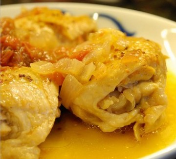 5、虽然原菜谱是用烤箱烤制,我认为如果用中小火烧,也是可以的,时间大概 45 分钟就够了,或者等鸡肉软了为止。