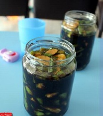 2、放凉之后,装瓶,这些黄瓜,得到两瓶(380克容量那种大瓶)。