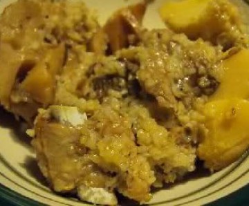 3:炒好的蒜蓉豆豉和排骨混合,加料酒(我用的是丰收桂花陈)。