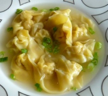 7.大碗里放鸡汤、盐、姜末、白胡椒粉、葱花、香油,加入抄手就开吃吧。