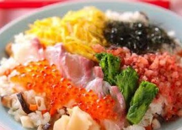 做饭用的米里加入昆布,作好米饭用调好的醋汁趁热搅拌均匀