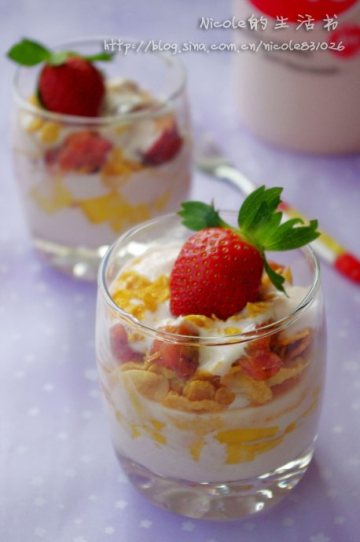 6.最后铺上酸奶,撒少许碾碎的玉米脆片即可。