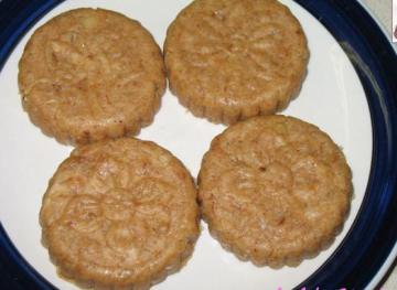 3.为了方便脱模,我用保鲜膜垫着来弄的。照片照得比较仓促,就是能看见个样子罢了。照片上小点心的花纹不是特别的明显,实际上还可以了。味道还不错的,也不很甜。