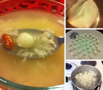 4汤锅中加入适量水,水煮开后,放入小圆子,煮至小圆子都浮上水面;