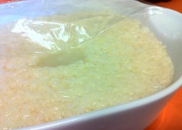 4. 饭冷却,拌入酒药粉,尽量均匀,但是尽量不要过分搅拌