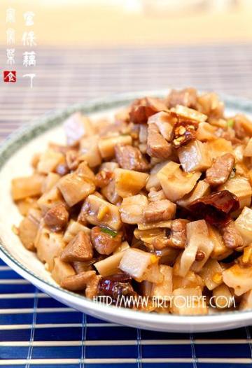 5.将肉丁放回一起翻炒到藕丁熟透。
