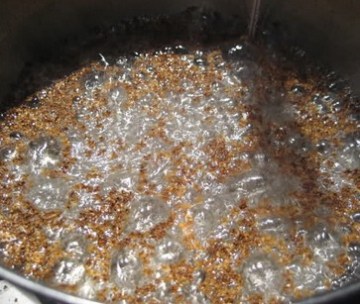 製作糖漿:把水和糖煮沸重的小平底鍋,攪拌至糖溶解,然後加入鮮花和煮1分鐘