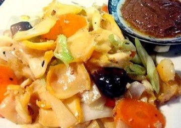 做法:螺头去外层粗皮,切片浸梳打水30分钟再洗干淨,红萝卜切片与草菇一起过水沥干备用.热油锅,放入螺片快速烫过立即拿出沥干油备用,重起油锅,大火爆香蒜蓉出香味,先下螺片大火微炒,再放红萝卜与草菇回鑊炒,料酒走边,加糖,盐,味精调味,再下葱段大火快炒即可出菜.沾热油虾酱吃.