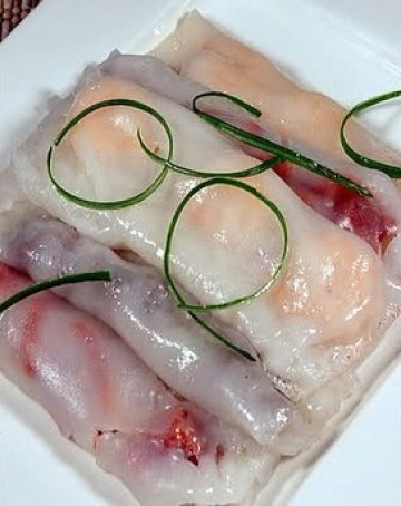 做法:虾仁洗净用一点生粉与油醃3小时备用,牛肉打碎后放一点泡打粉,蛋清,生粉,油,葱花,味精,盐各适量放在盘子里压扁醃3小时(详细牛肉醃制法可在我帖子里找),大火水滚后隔水蒸虾仁与牛肉大约5分钟取出备用(用煎锅做肠粉,一些馅要先蒸熟才行),义烧切小片备用.大火热煎锅,放4匙油让油大热后倒出油再开中小火热原来的煎锅大约2-3分钟再转开大火热煎锅(这个热油开头只用一次以后倒的肠粉都全免油了,这热锅法是使煎锅入油,倒肠粉时热气会平均快熟不会老)热锅后,* 一手提起煎锅,一手扚起4/5之汤勺的米漿倒在煎锅上,慢慢的转动煎锅让米浆完会分佈均匀,回放煎锅到火爐上,蓋上蓋大约20-30秒,打开蓋再等半分钟(看濁白色的肠粉变成透明,肠粉的週边己经割离锅边后),*快手反倒整个煎锅轻轻扣在砧板上(这个比较难,要快力道要恰好, 多练习几次吧!),整片肠粉就会脱锅而出,先褶3/1边后放馅,再褶3/1边蓋在馅上,肠粉就完成,再热煎锅,再扚起4/5之汤勺的米漿再倒在煎锅上,继续烹肠粉…. 烹好的肠粉用刀切去头尾,摆盘再淋上酱油,即可开吃.