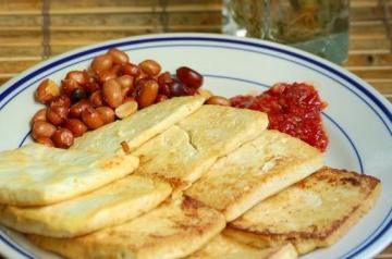 老豆腐半块,鸡蛋1只,芝麻1匙,食盐少许