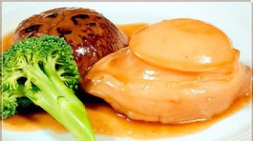 鲍鱼制作:西兰花在热水焯熟再过冷水备用.热油锅,爆香姜与蚝油,放些酒再加入些许高湯大滚后再放糖,味精,盐调味,此时将鲍鱼放入改用小火焖二个半小时后,将鲍鱼取出放碟上,西兰花放旁.原汤水用生粉勾芡调成浓汁淋在鮑鱼上,出菜前加少许鸡油.