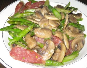 香肠,芦笋,口蘑,盐,蒜末,耗油