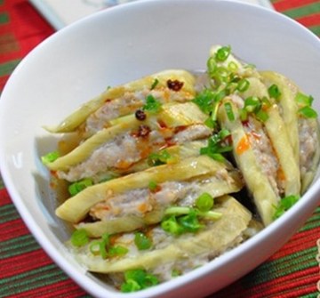 主料:茄子,500克,猪肉(肥瘦)150克,
