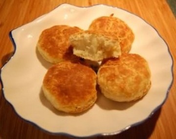ap面粉 1.5杯, 黄油(butter) 3 oz (3/4 stick), 白糖 1 大勺(tbsp), 盐 1/2 勺(tsp),泡打粉(baking powder) 1.5 勺(tsp),牛奶 适量.