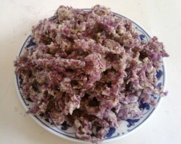 第二步:将白糖和淀粉加到蛋液(最好是蛋清)中,制成面糊(要厚重)