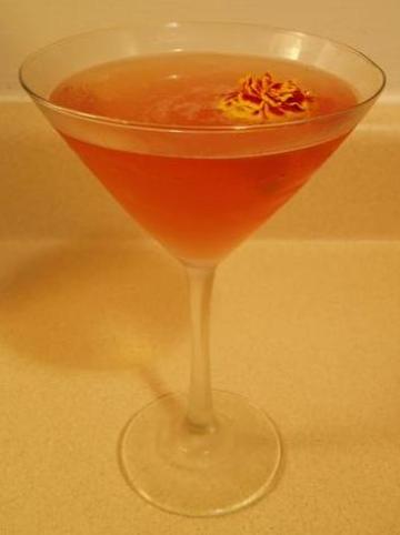 4份rose-infused vodka,半份sweet vermouth,1份cranberry juice,半份桂花糖浆