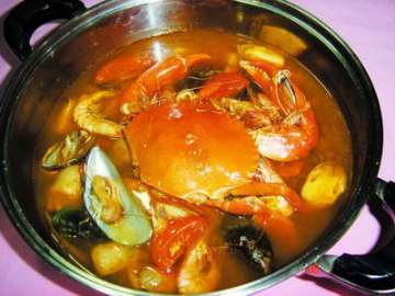(3)此锅底可涮烫鱿鱼、螃蟹、肥牛、肥羊、鱼片、鱼丸、豆腐皮、金针菇以及时令蔬菜等。