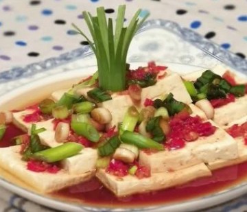 】一、把豆腐码好在碟上,放上剁椒,热水浇锅,蒸10分钟,蒸好后倒去碟里的水;