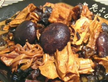 油豆腐、泡过的支竹、水发云耳(比木耳软些)、水发金针、水发冬菇。