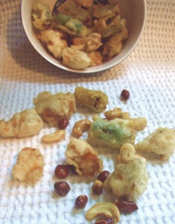 将秋葵切段,蘸上上述的面糊,同样方法炸之。