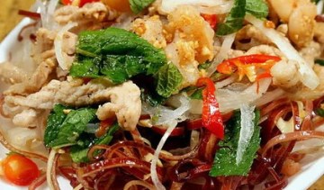 香蕉果,猪肉,虾仁,洋葱,猪皮,薄荷叶,花生,辣椒,蒜头,鱼露,糖,柠檬
