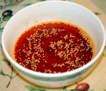 相关菜谱名称推荐:红 油,本文来源:,3、然后隔一个过滤勺,将热油倒入辣椒粉混合物中,倒入后会立即起泡沫注意离远点。静止放一晚上,油分离出来变红了就好吃了。前几次做放的辣椒面含量很高结果放一点就非常辣,这次就少量了点,并且用了少量的不辣paprika 做代替,结果辣度就刚刚好。,3、然后隔一个过滤勺,将热油倒入辣椒粉混合物中,倒入后会立即起泡沫注意离远点。静止放一晚上,油分离出来变红了就好吃了。前几次做放的辣椒面含量很高结果放一点就非常辣,这次就少量了点,并且用了少量的不辣paprika 做代替,结果辣度就刚刚好。