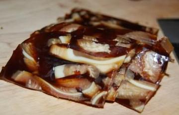 猪耳6片加八角2颗煮断生,彻底清除猪毛,切成长条,千年卤料一块,桂皮一块,八角2颗,生姜一块拍烂和猪耳一起下高压锅,加水淹没猪耳,上气后调小火压30分钟,然后盛到方形容器里,汤汁最好能盖过猪耳,凉了就可以切片蘸调料吃了。我因为没有高压锅,直接小火烧了4小时。卤料我就用了以前卤牛肉剩下的。唯一缺陷就是我自作主张加了老抽,出来颜色不漂亮。再一缺陷就是我切长条的时候切的太细了,最后出来的里面的耳片显得碎了些
