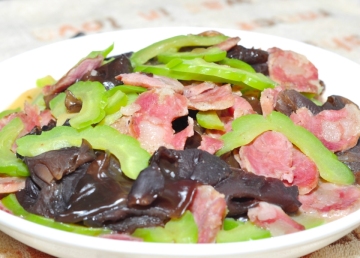 第一种:美食美味的烩腊肠木耳苦瓜做法