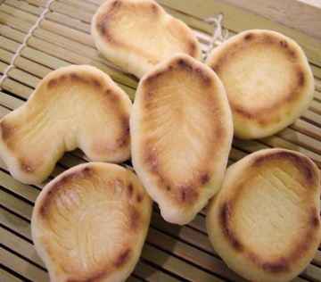 2. 用模子做出各种形状,用平底锅(干锅,不放油)小火烙熟。