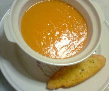 k。 一碗蔬菜汤 + 一片烤香蒜面包