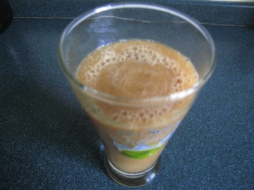 3.将煮熟的蕃薯和糖水放入搅拌机搅拌成浓汤即可