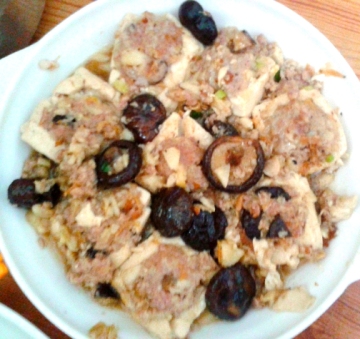 5.再将以上材料放入已蒸好的豆豆腐里。将剩下的材料做炒饭。