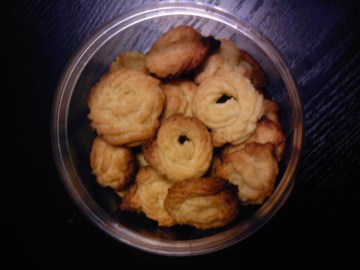 2.干面糊装入裱花袋,装上花嘴,做成不同花型;