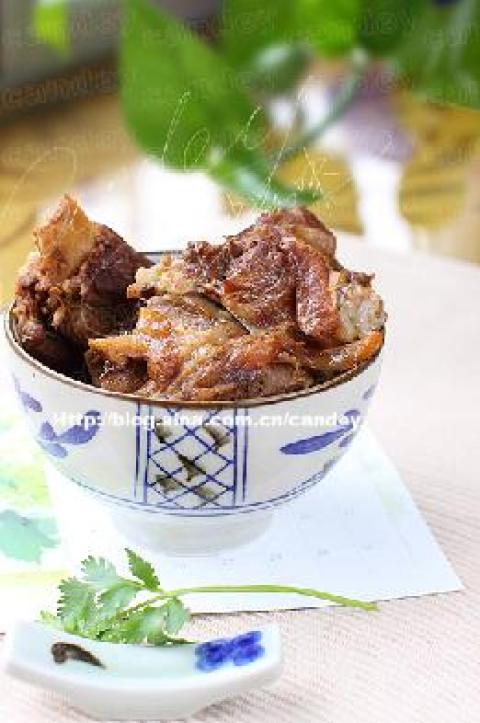 做法:1、 将猪骨放入清水中浸泡两小时,期间换几次水,去除血污;2、 将猪骨放入冷水中,水沸撇去浮沫,捞出猪骨;3、 另煮一锅热水,水将沸时放入焯过的猪骨,放入料酒、生抽、老抽、白糖、盐、黄酱、山楂、桂皮、花椒、大料、陈皮、香叶、丁香等调料,大火煮沸,小火继续煮一个小时;4、 改中火或大火再煮半个小时,收一下汤汁即可。